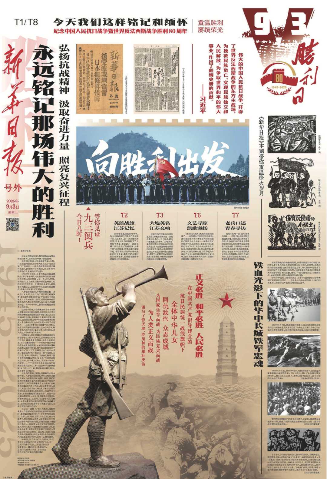 今年是中国人民抗日战争暨世界反法西斯战争胜利80周年,新华报业传媒集团秉持系统化策划思维,运用系统性变革成效,在新华日报、交汇点新闻、扬子晚报、紫牛新闻等平台打出系列报道“组合拳”,先后推出“归来仍是少年”“大地英名”“凯歌穿越八十年”等重磅报道,通过符号叙事、沉浸传播、情理交融、特色精制、参与互动等路径,构建立体化叙事体系,突破重大历史题材主题宣传的时空限制,强化抗战精神的集体记忆。多个作品入选中国记协“我的代表作”。9月3日,新华日报以“号外”形式推出“抗战胜利80周年特刊”,“交汇点新闻”客户端同步推出集成产品,既集中展现各重磅系列报道,又以创新意蕴进行二次创作,唱响主流媒体抗战精神宣传强音。